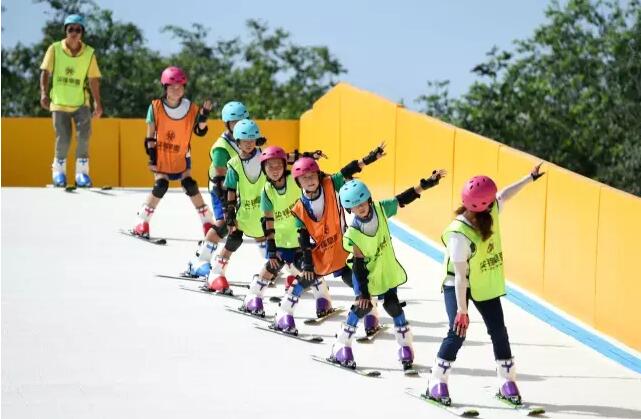 活动当天,众多滑雪零基础的小学生及家长参加了旱地滑雪体验。你看,经过教练的简单指导,孩子们滑得多棒啊!