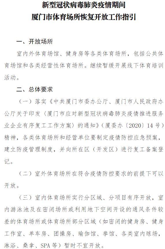 (一)室外体育场所在符合疫情防控要求的前提下全部开放。