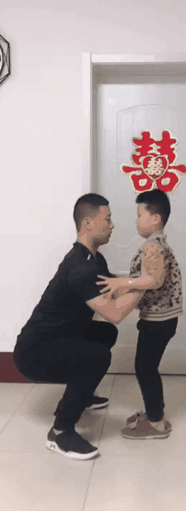 2. 下蹲到最低点, 双手在大腿内侧,