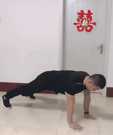 动作步骤: 直臂支撑地面,膝盖伸直,头肩髋在一条直线,向上到手臂自然伸直,向下到大臂与地面平行