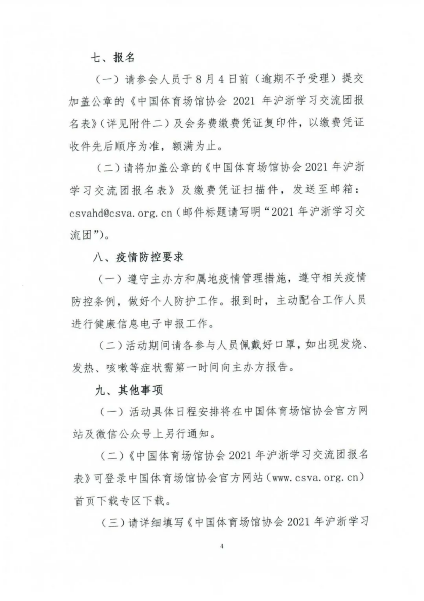 关于举办中国体育场馆协会 2021年沪浙学习交流团的通知