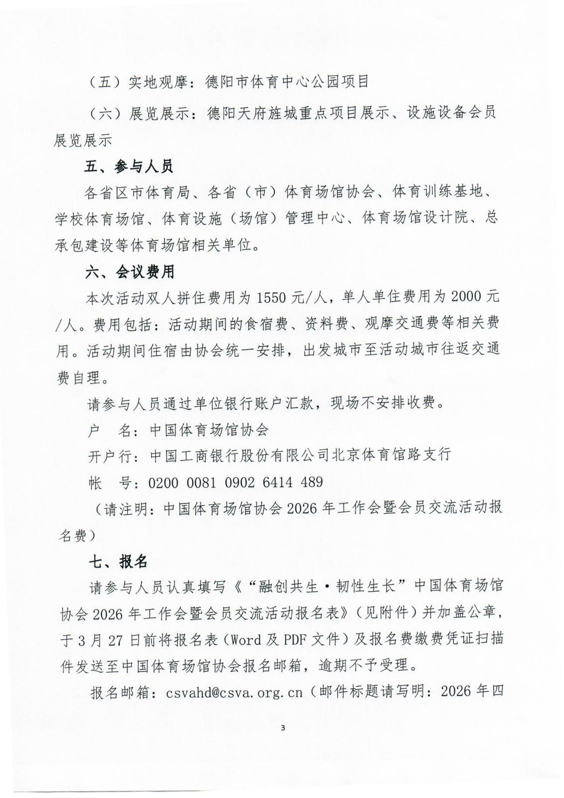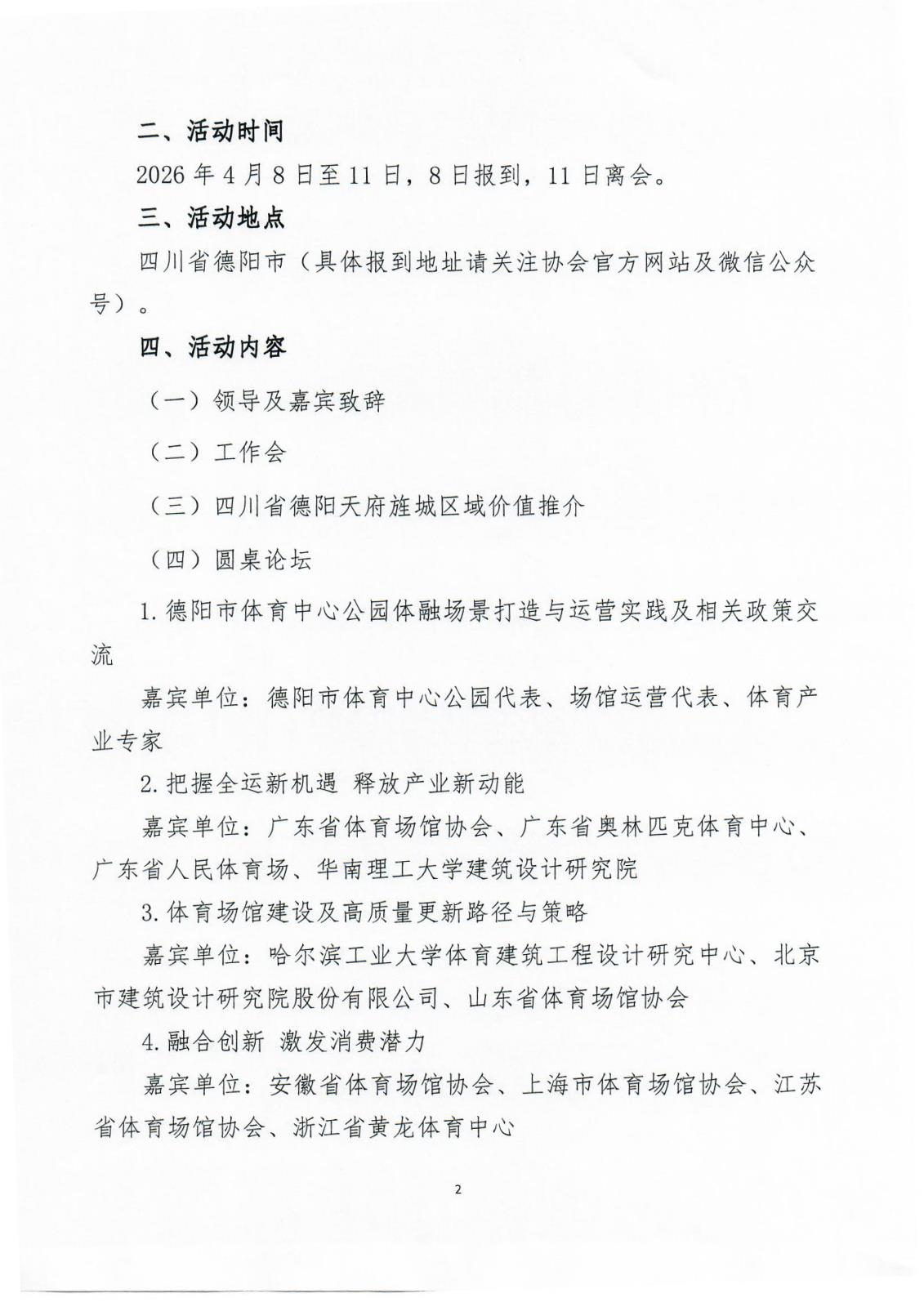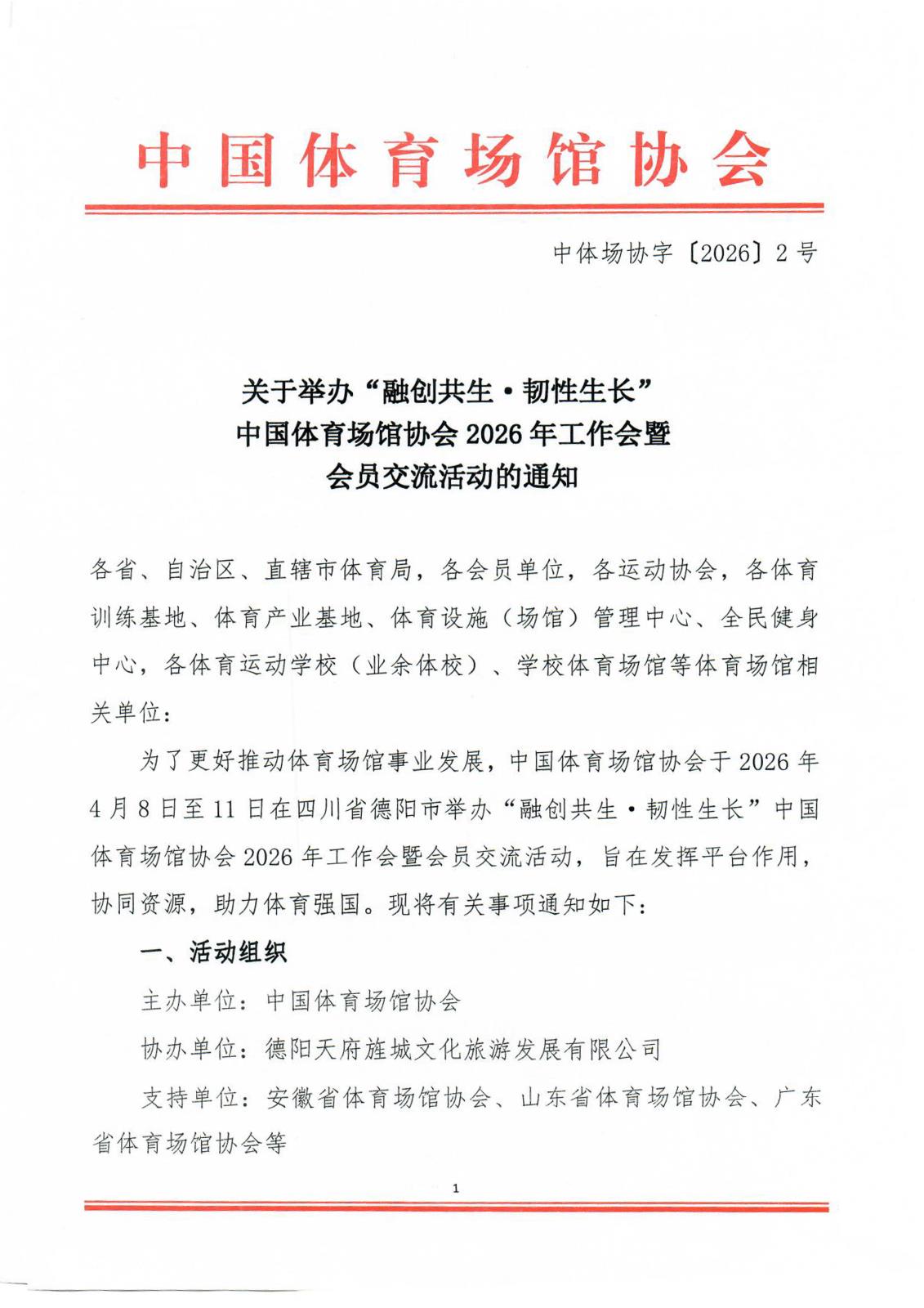 首页 > 协会动态 > 通知公告 关于举办“融创共生·韧性生长”中国体育场馆协会2026年工作会暨会员交流活动的通知 2026/3/2 11:02:39 相关附件下载 “融创共生·韧性生长”中国体育场馆协会2026年工作会暨会员交流活动报名表.docx 上一篇:调研问卷 | 中国体育场馆协会2026年度工作需求调研问卷 下一篇:中国纺织工业联合会党委常委、副会长端小平接受纪律审查和监察调查